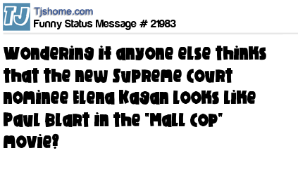 X was wondering if anyone else thinks that the new Supreme Court nominee Elena Kagan looks like Paul Blart in the "Mall Cop" movie?