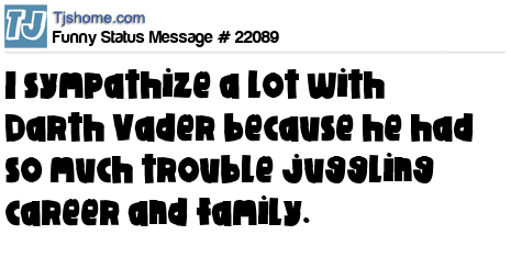 X I sympathize a lot with Darth Vader because he had so much trouble juggling career and family.