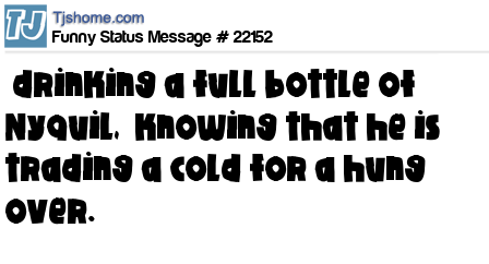 X drinking a full bottle of Nyquil, knowing that he is trading a cold for a hung over.