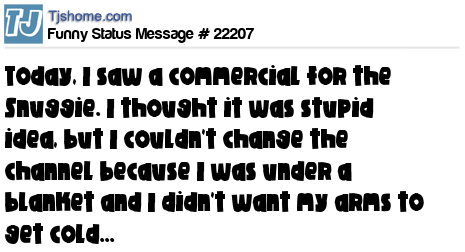- # 16334 Today, I saw the commercial for the Snuggie. I still think it is stupid idea, but I couldn't change the channel because I was under a blanket and I didn't want my arms to get cold…