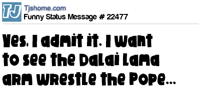 X Yes, I admit it. I want to see the Dalai Lama arm wrestle the Pope...