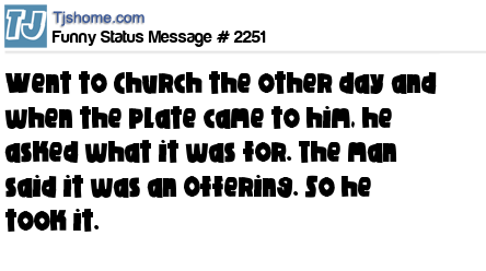 X went to Church the other day and when the plate came to him, he asked what it was for. The man said it was an Offering. So he took it.