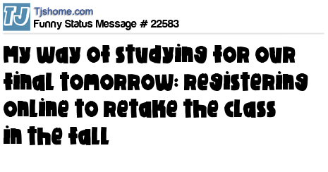 X  my way of studying for our final tomorrow: registering online to retake the class in the fall