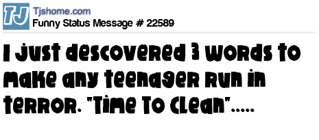 X  I just descovered 3 words to make any teenager run in terror. "Time To Clean".....
