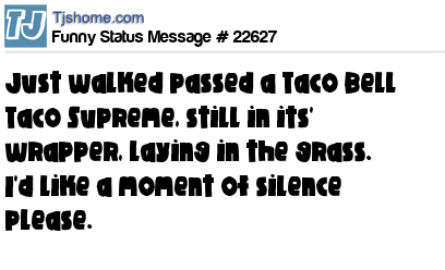 X is Just walked passed a Taco Bell Taco Supreme, still in its' wrapper, laying in the grass. I'd like a moment of silence please.