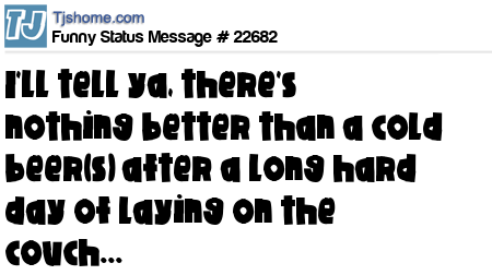 X I'll tell ya, there's nothing better than a cold beer(s) after a long hard day of laying on the couch...