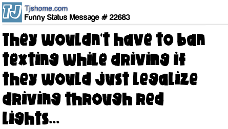 X  They wouldn't have to ban texting while driving if they would just legalize driving through red lights...