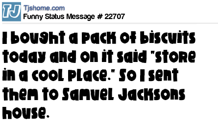 X I bought a pack of biscuits today and on it said "store in a cool place." So I sent them to Samuel Jacksons house.