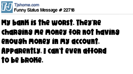 X My bank is the worst. They're charging me money for not having enough money in my account. Apparently, I can't even afford to be broke.