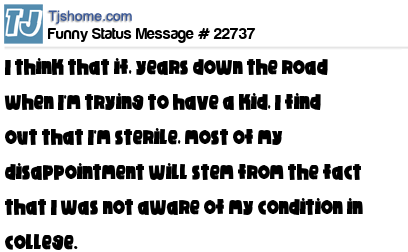 X I think that if, years down the road when I'm trying to have a kid, I find out that I'm sterile, most of my disappointment will stem from the fact that I was not aware of my condition in college.