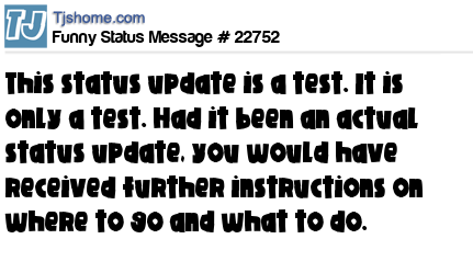 - # 52675 If this had been a status update, the Attention Signal you just read would have been followed by official status, news or general BS. This concludes this test of the Emergency I Don't have a Status Update.