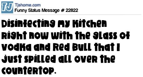X Disinfecting my kitchen right now with the glass of vodka and Red Bull that I just spilled all over the countertop.