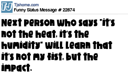 - # 105374 The next person who says its not the heat, it's the humidity will learn its not my fist, it's the impact.