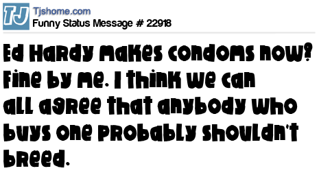 X Ed Hardy makes condoms now? Fine by me. I think we can all agree that anybody who buys one probably shouldn't breed.