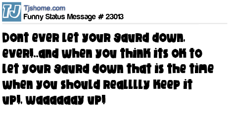 X is Dont ever let your gaurd down, ever!..and when you think its ok to let your gaurd down that is the time when you should realllly keep it up!, waaaaaay up!