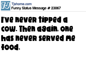 - # 43464 I've never tipped a cow. Then again, one has never served me food.