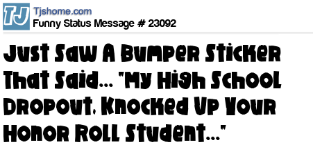 X has Just Saw A Bumper Sticker That Said... "My High School Dropout, Knocked Up Your Honor Roll Student..."