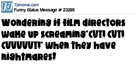 - # 15045 I've always wondered iffilm directors wake up screaming"CUT! CUT! CUUUUUT!" whenthey have nightmares.