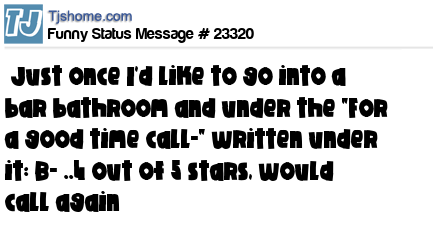 X Just once I'd like to go into a bar bathroom and under the "For a good time call-" written under it: B- ..4 out of 5 stars, would call again