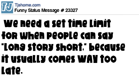 X We need a set time limit for when people can say "long story short," because it usually comes WAY too late.