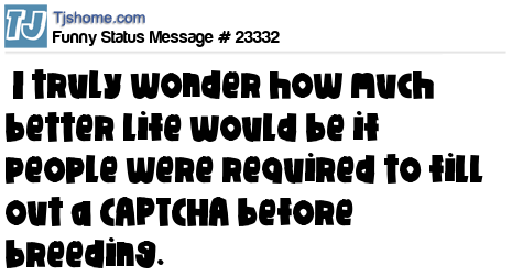 X I truly wonder how much better life would be if people were required to fill out a CAPTCHA before breeding.