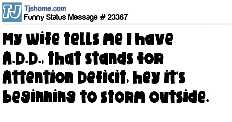X is My wife tells me I have A.D.D., that stands for Attention Deficit, hey it's beginning to storm outside.