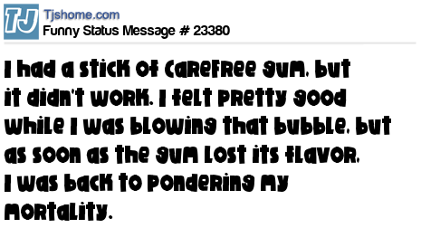 X says I had a stick of CareFree gum, but it didn't work. I felt pretty good while I was blowing that bubble, but as soon as the gum lost its flavor, I was back to pondering my mortality.