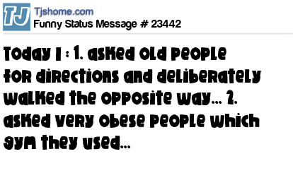 X  today I : 1. asked old people for directions and deliberately walked the opposite way... 2. asked very obese people which gym they used...