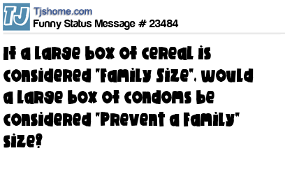 X If a large box of cereal is considered "Family Size", would a large box of condoms be considered "Prevent a Family" size?