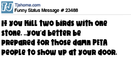 X If you kill two birds with one stone, ..you'd better be prepared for those damn PETA people to show up at your door.