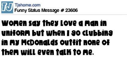- # 112474 Women always say they love a man in uniform but when I go clubbing in my McDonald's outfit no one will even talk to me