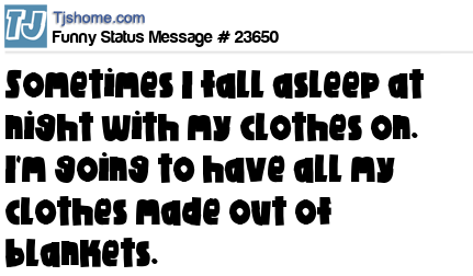 X Sometimes I fall asleep at night with my clothes on. I'm going to have all my clothes made out of blankets.