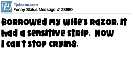- # 165086 borrowed my wife's razor, it had a sensitive strip. Now I can't stop crying!!