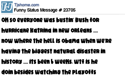 - # 69829 Why do our Presidents hate New Orleans so much? First President Bush sent a hurricane towards New Orleans, now Obama is sending one! I just don't understand?
