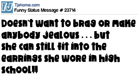 - # 194200 I don't want to brag or make anybody jealous, but I can still fit into the earrings I wore in high school.
