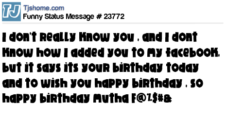 X is I don't really know you , and I dont know how I added you to my facebook, but it says its your birthday today and to wish you happy birthday , so happy birthday mutha F@%$#&