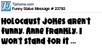 X is Holocaust jokes aren't funny, Anne Frankly, I won't stand for it ...