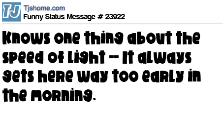 - # 167127 If I know 1 thing about the speed of light, it gets here to early in the morning.