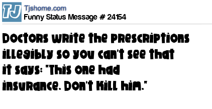 - # 122581 Doctors write the prescriptions illegibly so you can’t see that it says: “This one had insurance. Don’t kill him.”