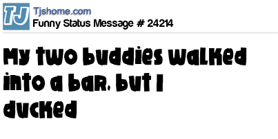 - # 47165 Two guys walk into a bar ...... the third one ducked.