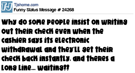 X is why do some people insist on writing out their check even when the cashier says its electronic withdrawal and they'll get their check back instantly, and theres a long line... waiting??