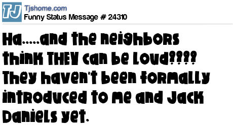X says Ha.....and the neighbors think THEY can be loud???? They haven't been formally introduced to me and Jack Daniels yet.