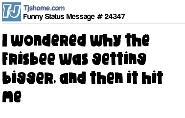 - # 205766 Was wondering why the frisbee kept getting bigger and bigger, but then it hit me.