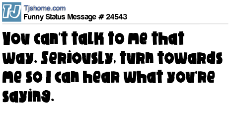 X  You can't talk to me that way. Seriously, turn towards me so I can hear what you're saying.
