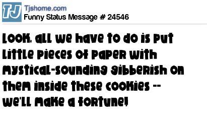 X Look, all we have to do is put little pieces of paper with mystical-sounding gibberish on them inside these cookies -- we'll make a fortune!