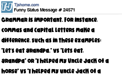 - # 35407 Grammer is important! Capitalization is the difference between helping your Uncle Jack off a horse and helping your Uncle jack off a horse.