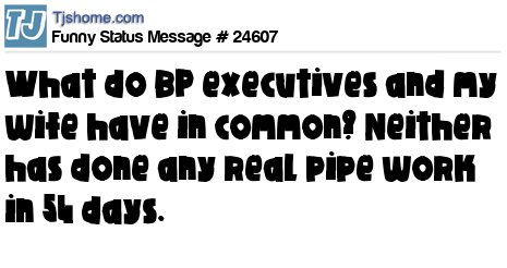 X  What do BP executives and my wife have in common? Neither has done any real pipe work in 54 days.