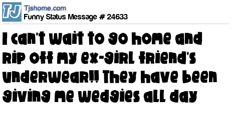 X I can't wait to go home and rip off my ex-girl friend's underwear!! They have been giving me wedgies all day