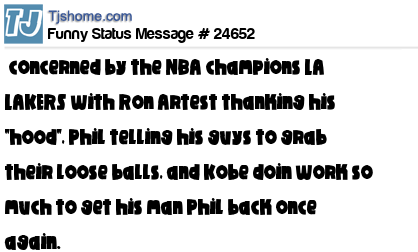X is concerned by the NBA champions LA LAKERS with Ron Artest thanking his "hood", Phil telling his guys to grab their loose balls, and Kobe doin work so much to get his man Phil back once again.