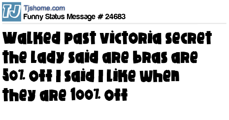- # 106180 Girl in Victoria Secret: Wow! These bras & panties are 20% off!! Me: I bet If you hangout with me they'll be 100% off.